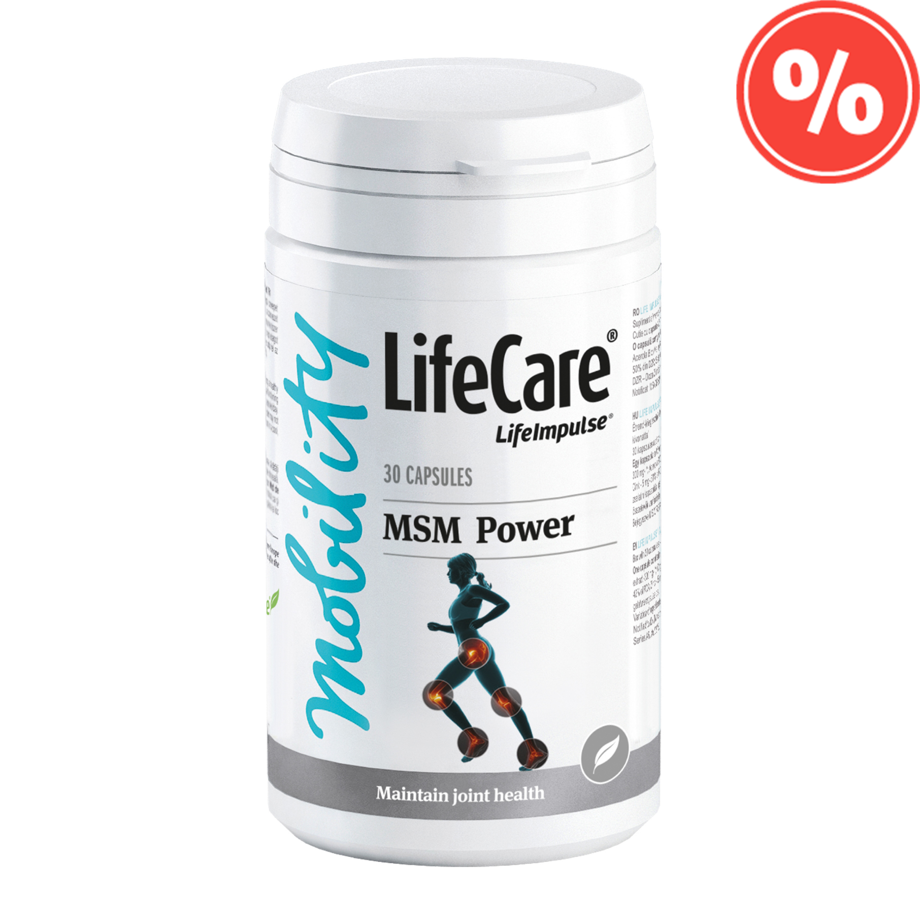 MSM Power, Life Care® is considered a natural analgesic, but also an energizer. This supplement has a strong anti-inflammatory effect used for fighting arthrosis arthritis and some bone affections. Helps with nutrient absorption at cellular level, accelerates the recovery of joints and muscles,